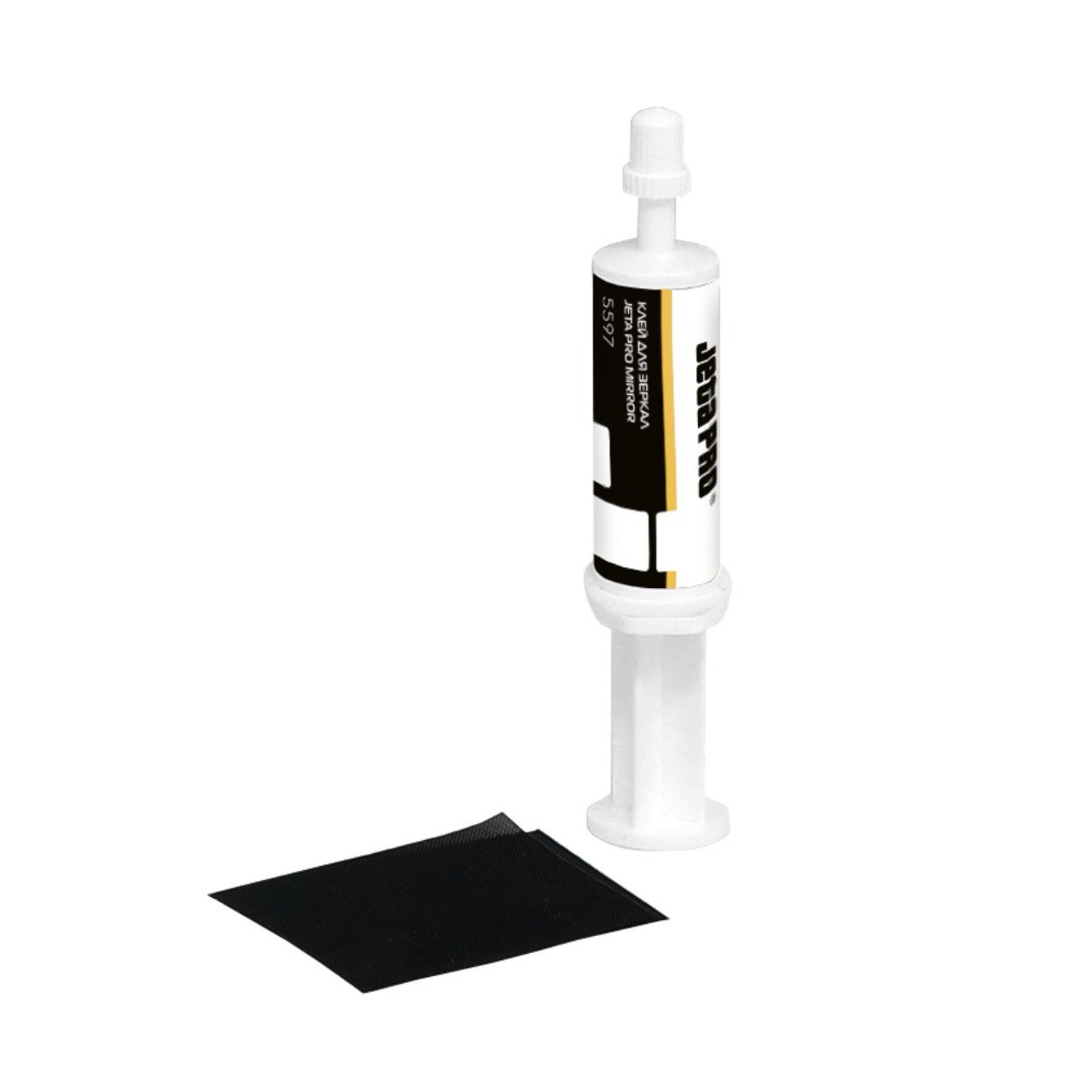Клей для фиксации салонного зеркала Jeta Mirror JETA PRO — быстросохнущий, однокомпонентный, высокопрочный клей для фиксации корпуса салонного зеркала на внутренней поверхности лобового стекла. Полиэстеровые пластины применяются для уменьшения зазора места приклейки корпуса и поверхности стекла. Набор идеально подходит для быстрого ремонта и может использоваться на легком и коммерческом автотранспорте. Прозрачная клеевая пленка гарантирует аккуратное место склейки.