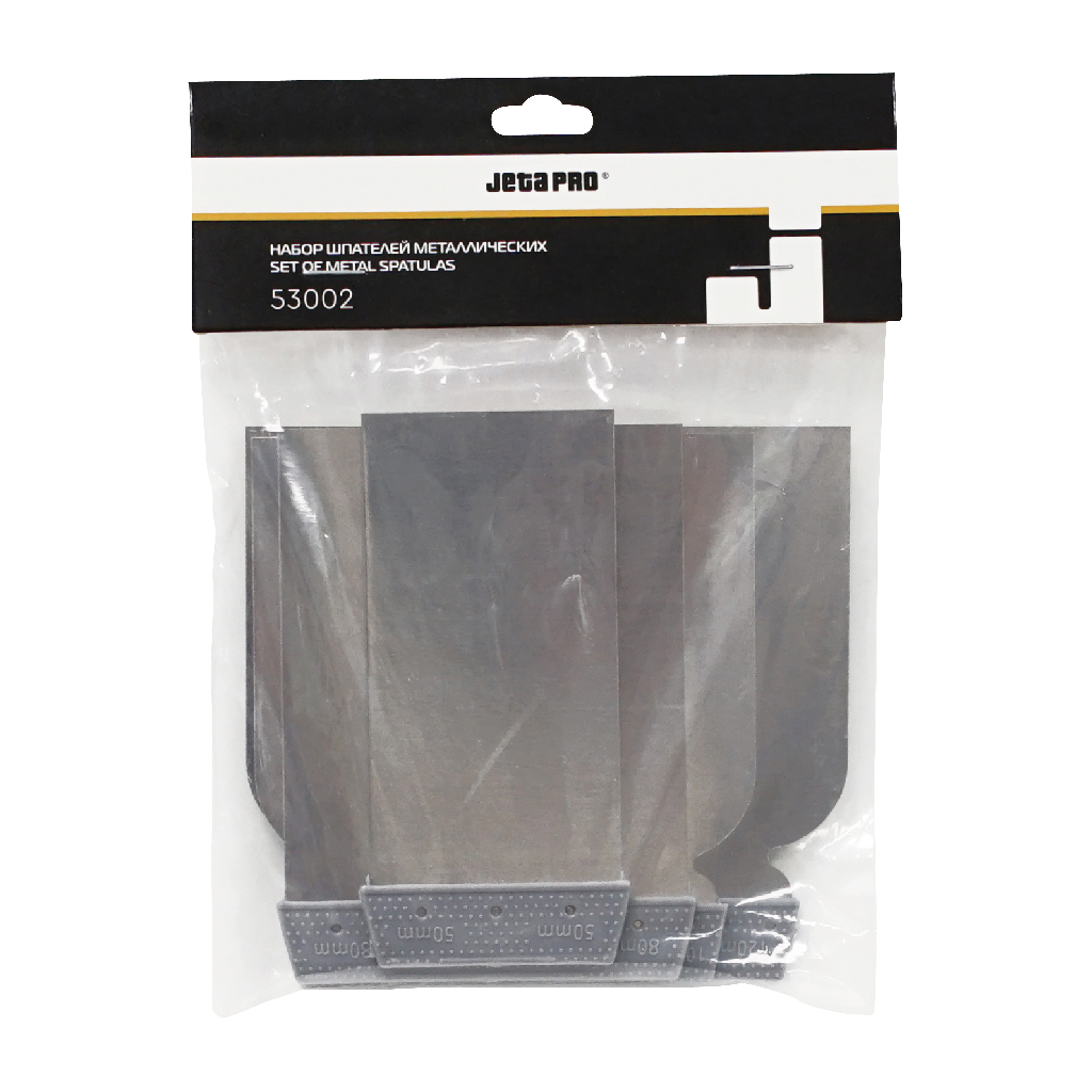 Набор металлических шпателей с пластиковой ручкой JETA PRO 53002 (4 шт.) — универсальный инструмент для смешивания и нанесения ремонтных составов, таких как шпатлевка, герметик и мастика, при проведении кузовного ремонта. Изготовленные из высококачественной нержавеющей стали, шпатели обеспечивают им долговечность и надежность в работе.