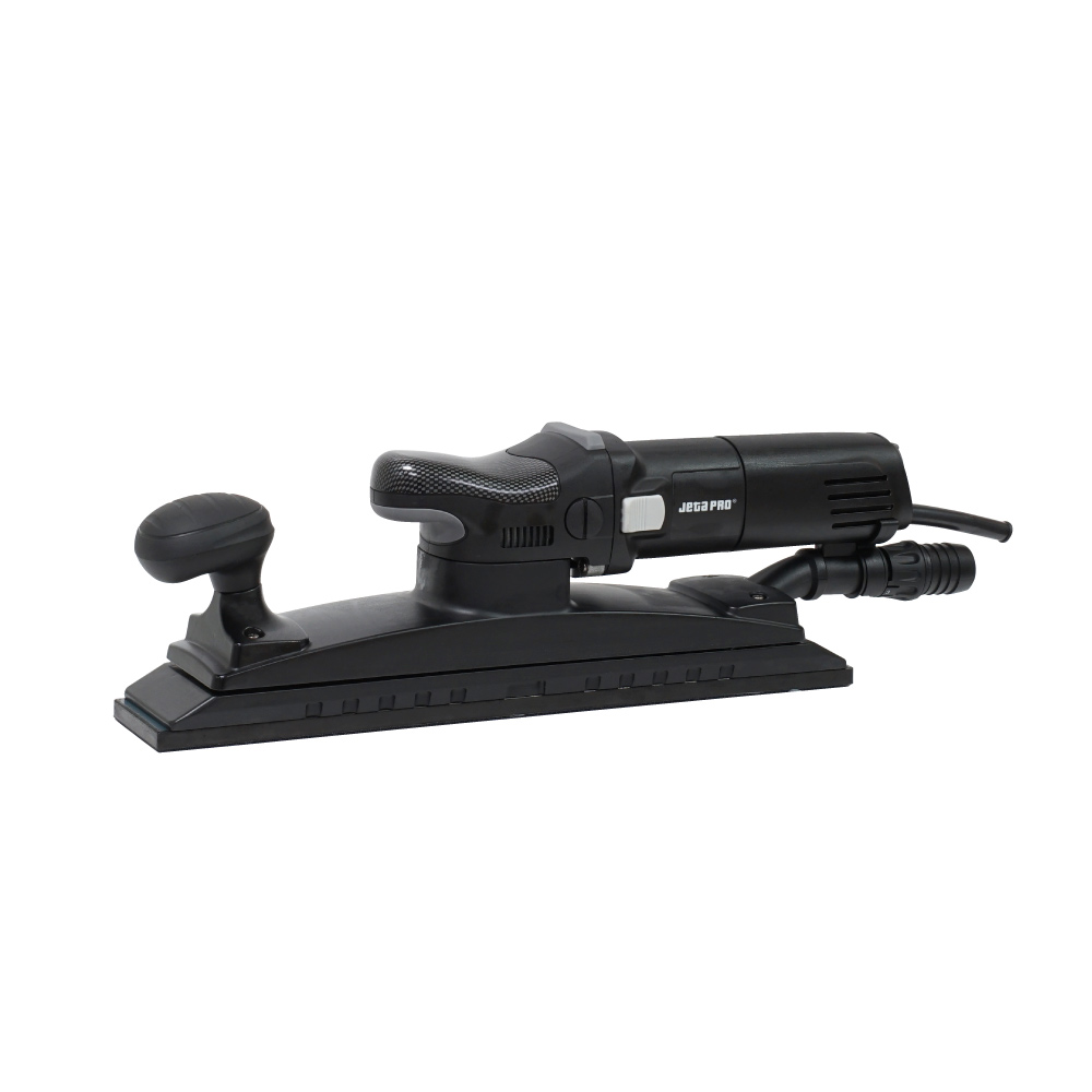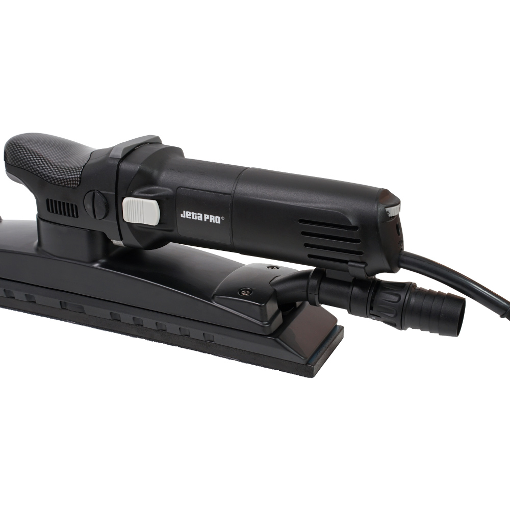 Шлифовальный рубанок с орбитальным типом движения и с пылеотводом JETA J5145 для выравнивание больших поверхностей. Подходит для шлифовки дерева, пластика, металла, штукатурки и окрашенных поверхностей.
