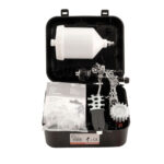 - Принадлежности: ключ универсальный, ёршик для чистки краскопульта, 3 фильтра для очистки ЛКМ, масло 15 мл для смазки трущихся частей и механизмов краскораспылителя, не соприкасающихся при работе с ЛКМ.