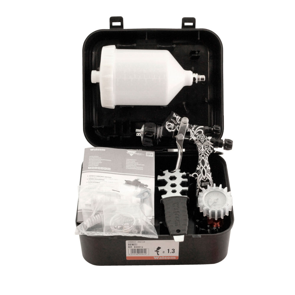 Система воздушного распыления HVLP: (High Volume Low Pressure) большой объем, низкое давление — это вид краскопультов, которые имеют специальное строение внутренних воздушных и распыляющих каналов ЛКМ при низком давлении сжатого воздуха. С ужесточением норм и законов по защите окружающей среды, в начале 80-х годов была разработана новая, более экологичная система распыления HVLP. Основная проблема заключалась в том, что во время покраски деталей конвенциональным краскораспылителем традиционной серии большое количество лакокрасочного материала распылялось в окружающую среду, т.к. конвенциональные краскопульты имели низкий коэффициент переноса ЛКМ на окрашиваемую поверхность. За счет низкого давления в распыляющей головке (HVLP – 0,7 бар), краскораспылитель работает с минимальным количеством опыла и туманообразования. Коэффициент переноса продукта свыше 65%. Одним из основных преимуществ краскораспылителя Walcom Genesi CARBONIO 360 HVLP является низкое потребление сжатого воздуха – максимум 360 л/мин, что примерно на 20-25% ниже, чем у конкурентов, а также максимальная экономия наносимого материала.