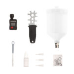 • Принадлежности: ключ универсальный, ёршик для чистки краскопульта, 3 фильтра для очистки ЛКМ, масло 15 мл для смазки трущихся частей и механизмов краскораспылителя, не соприкасающихся при работе с ЛКМ.