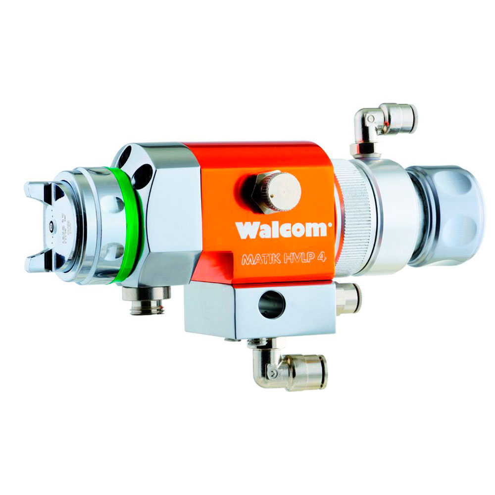 MATIK HVLP 4 Walcom сочетает характеристики высокой степени распыления продукта и соответствует типичным потребностям сектора автоматической окраски, таким как большая продолжительность срока службы компонентов и простота технического обслуживания.